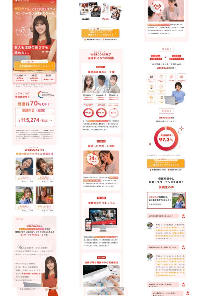 【意識した亊】スクロール離脱を防ぐためjqueryで動きをつけたLPを作成しました。
